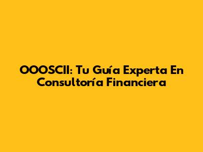 OOOSCII: Tu Guía Experta En Consultoría Financiera